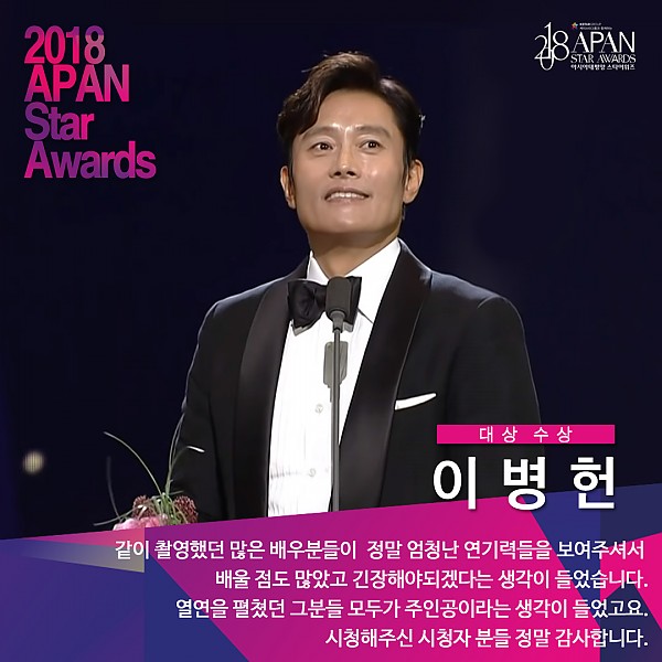 '2018 APAN Star Awards' 대상 이병헌 페이지 정보 작성자 연매협 작성일18-10-26 14:10 조회12,624회 본문 ▲ 대상 이병헌(tvN '미스터 션샤인') 이전글 다음글 목록